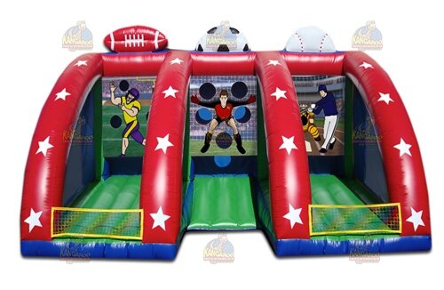 A versatile 3-in-1 sports combo game that brings three classic activities together in one compact rental. Designed for active play, it combines multiple target and scoring elements so groups can rotate through soccer, football , and other baseball-based challenges without swapping equipment. Sturdy construction and clear play zones make it easy to supervise and keep games moving, while the compact footprint fits in yards, gyms, or event spaces. Ideal for birthday parties, school events, team practices, or family gatherings, this combo encourages friendly competition, physical activity, and quick game transitions for players of varying ages and skill levels.